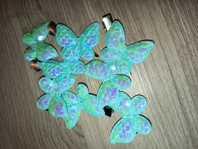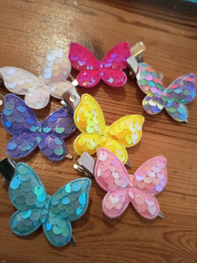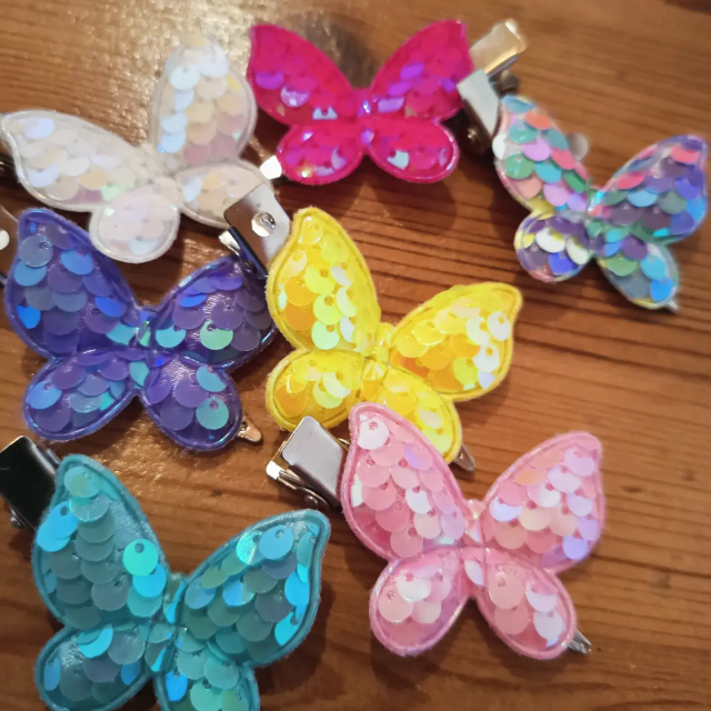tolle Haarspangen mit weichen Pailetten-Schmetterlingen in verschiedenen Farben.