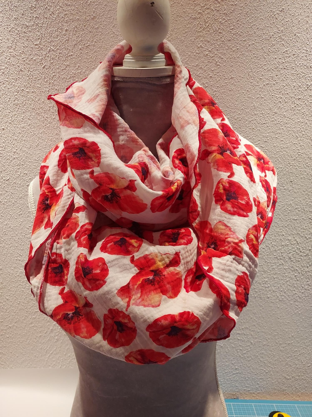 Loopschal innen gefüttert mit rotem Jersey.